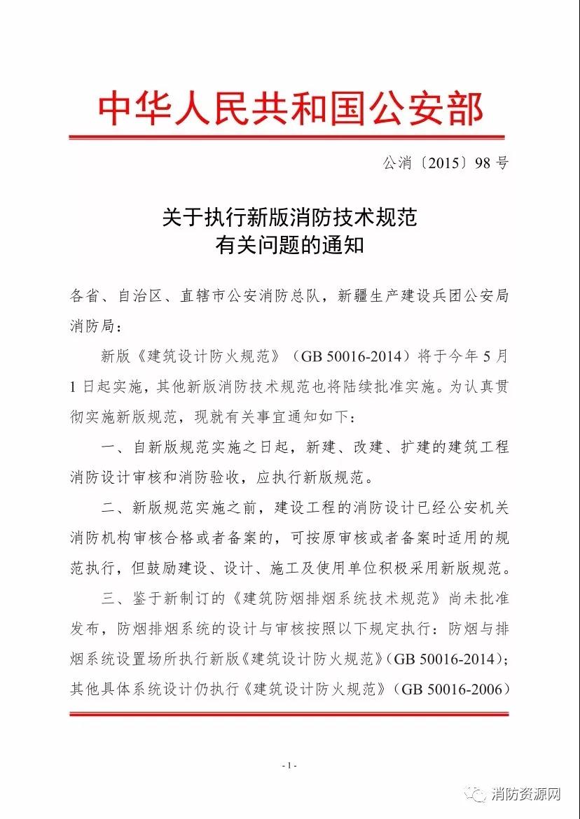 新版《建筑设计防火规范》(GB50016-2014)将于今年5月1日起实施,其他新版消防技术规范也将陆续批准实施。为认真贯彻实施新版规范,现就有关事宜通知如下: